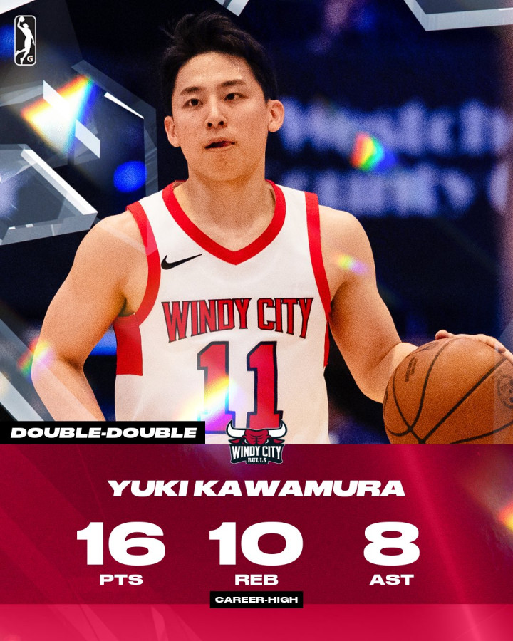 此役,日本球员、公牛双向协议后卫代表风城公牛出战,他在37分钟的技艺里15投4中,三分8中2、罚球5中4,拿下16分10篮板8助攻2抢断。