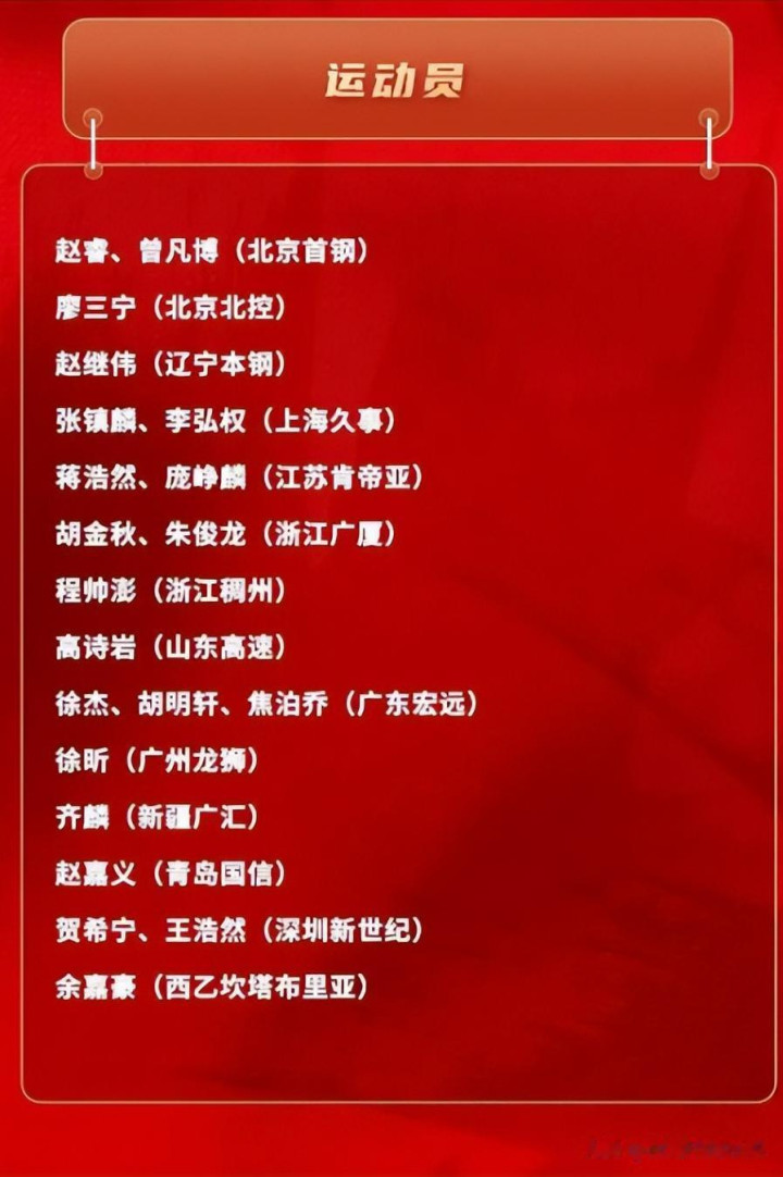 而庞峥麟、徐昕、王浩然等联赛新东说念主的初度入选,则注入了清新血液。