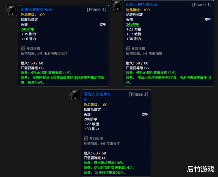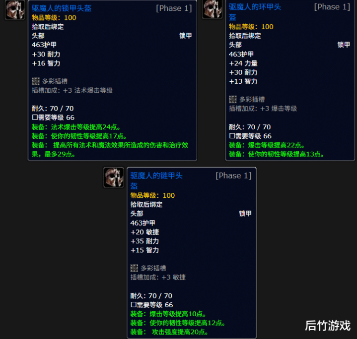 《魔兽宇宙》周年服TBC的P1阶段团本还未盛开,一些“阴魂碎屑”兑换的装备值得珍视,天然它们皆是带韧性的PVP装,但在高装等的加握下,PVE也能过渡一用,底下进行盘货。